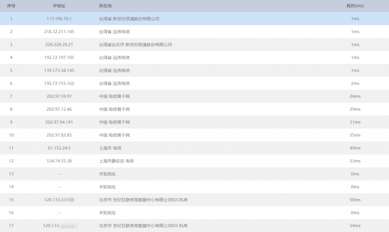 从欧洲出口后依次到达北京联通,上海联通,再到达阿里云