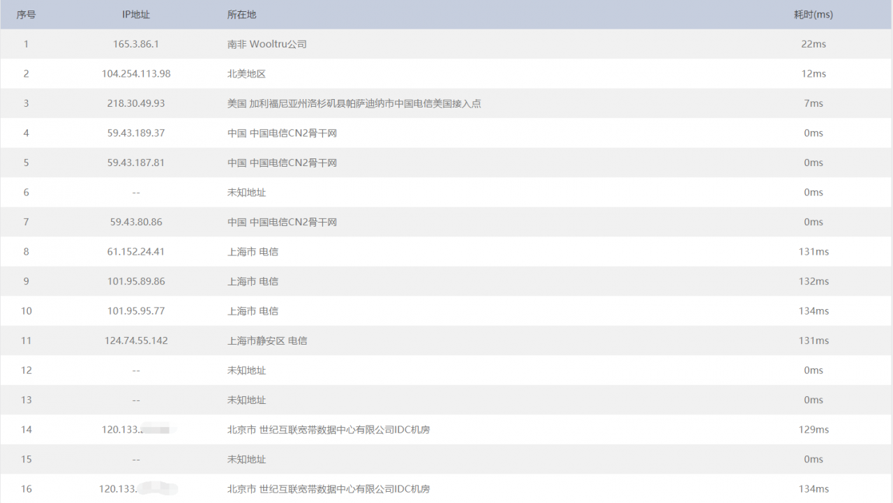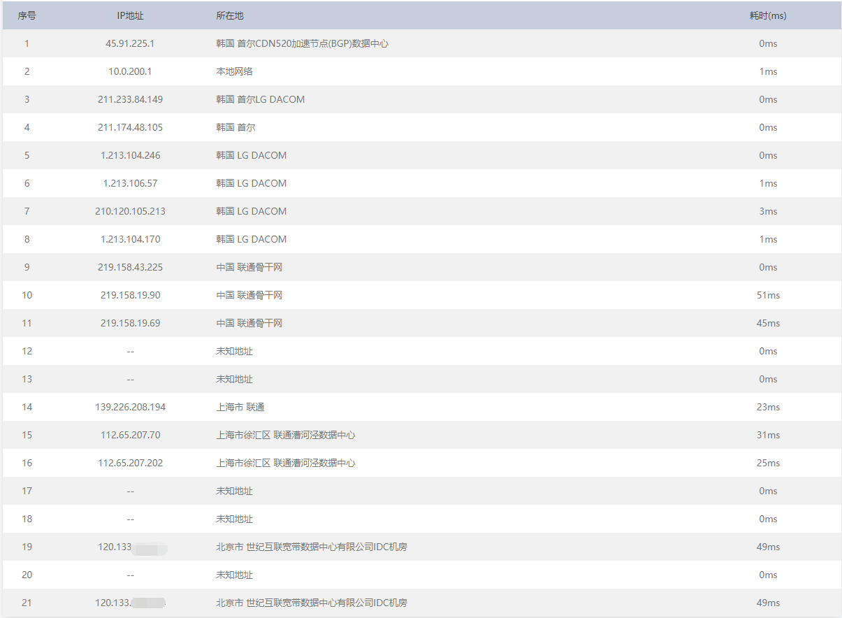 - 测试借助站长工具-路由追踪完成,各图片traceroute起始ip都在大陆以外地区,具体信息见图片:
