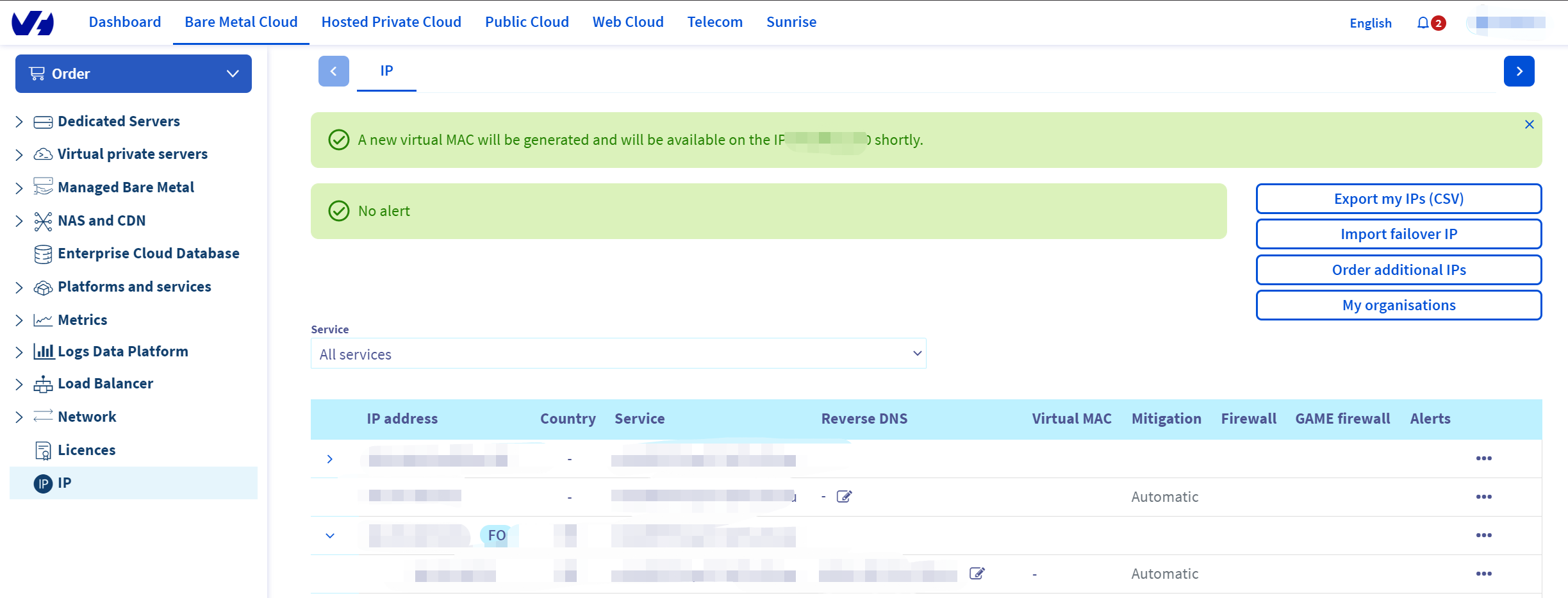OVH的IP是真的便宜,一次性支付2欧的安装费就能长期免费使用,但是配置IP的时候需要初始化mac,而官网的GUI又不支持批量操作....