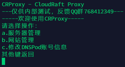 测试码可以在这里获取: //dev/get-crproxy-token.php?ip=1.1.1.1把1.1.1.1替换成CRProxy主控机器的公网IP就行。