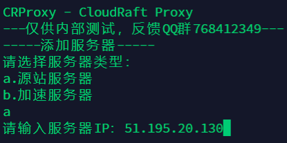 在上述主界面中依次进入【a.服务器管理】>>【a.添加服务器】>>【a.源站服务器】