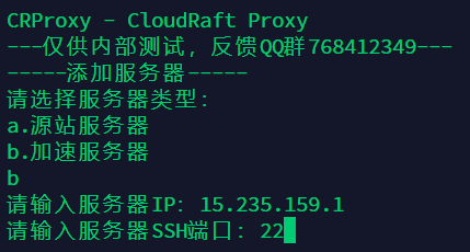 SSH登录需要安装CRProxy的服务器,并执行如下命令: