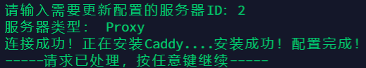 完成后同样的操作,依次进入【a.服务器管理】>>【c.更新服务器配置】根据提示输入服务器ID,会完成服务的安装: