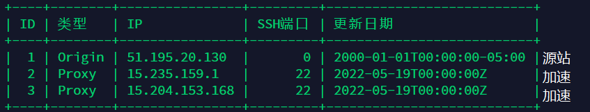 至此加速节点已经部署完成了,重复上述步骤添加其他的服务器,本例中还添加了额外一台美国服务器,ID为3。