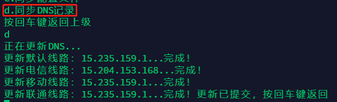 选择【d.同步DNS记录】