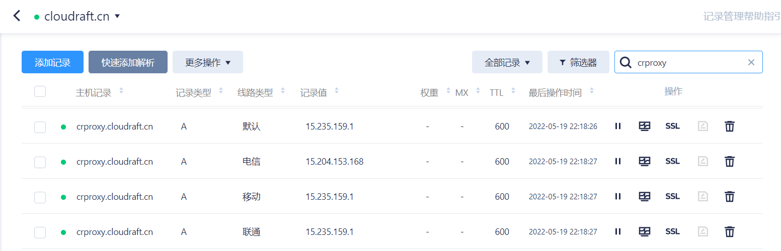 3. 同步DNS记录,支持分运营商线路解析到不同节点