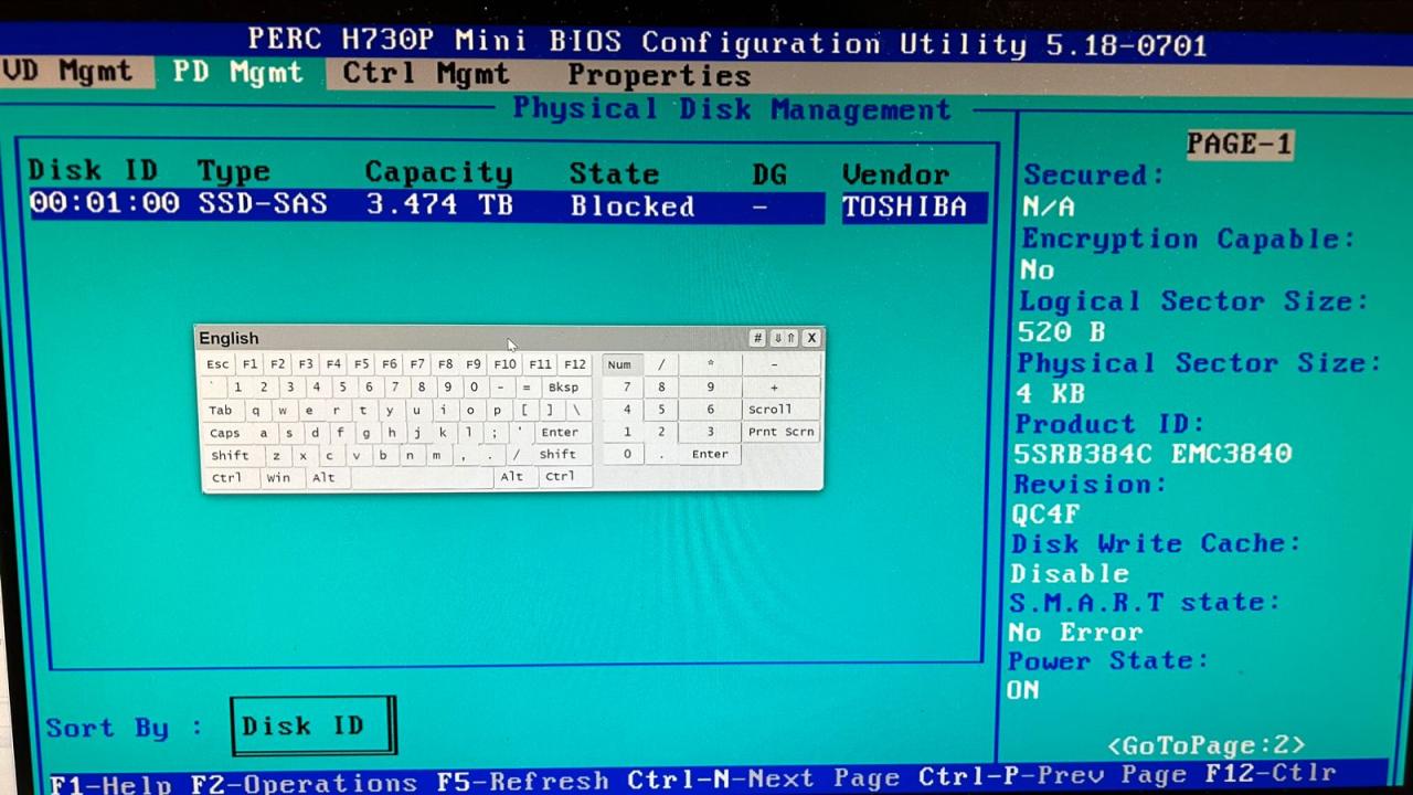 没想到插上R730(H730)阵列卡之后显示不支持,扇区大小是520b: