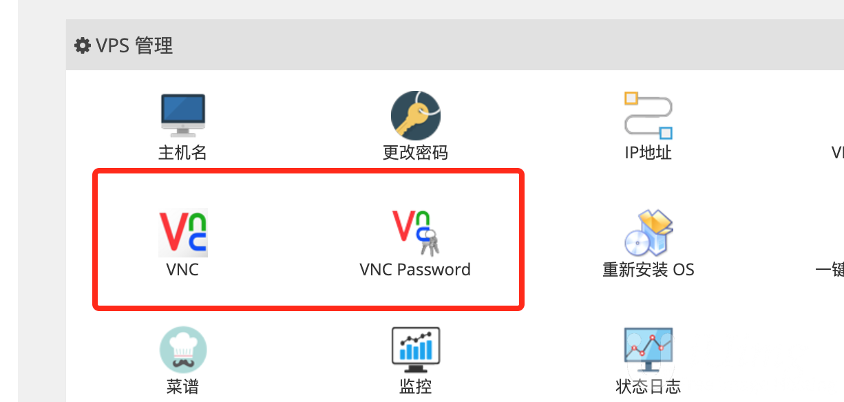 然后在控制面板中,查看VNC的信息,以及修改VNC密码(如果懒的看邮件的话)