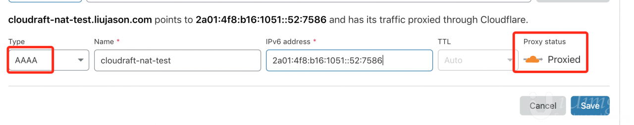等DNS生效了就好了,测试地址:https://cloudraft-nat-test.liujason.com/