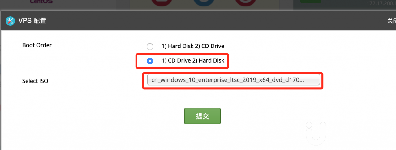 在控制面板中的VPS配置选项中,可以选择启动顺序和挂载磁盘: