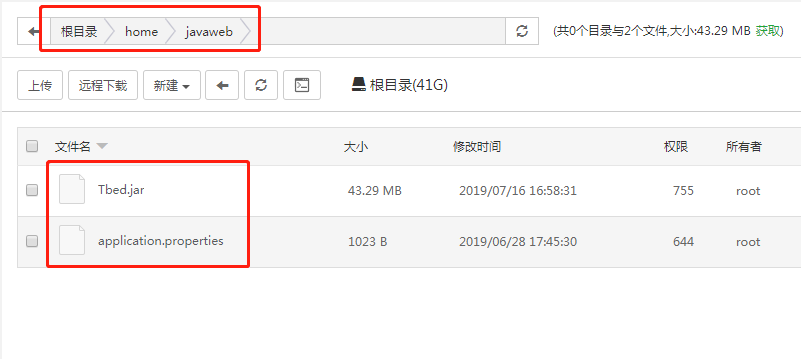 解压后得到Tbed.jar和application.properties两个文件,这两个文件就是我们需要的部署包,和配置文件了。