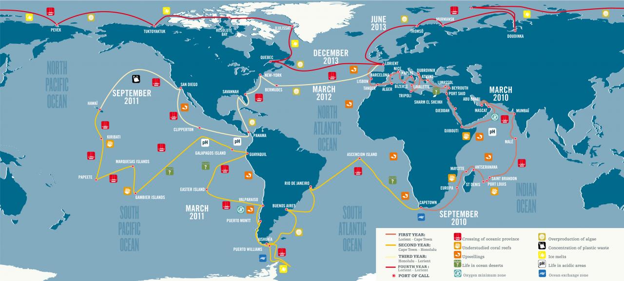 为研究全球变暖对海洋生物多样性的影响,科学家们横跨大西洋、太平洋、南极和印度洋70000英里海域,探究浮游生物在地球生命系统中的角色、气候变化对海洋食物链的影响、海洋生物多样性的保存以及对抗污染和过度捕鱼的方法。