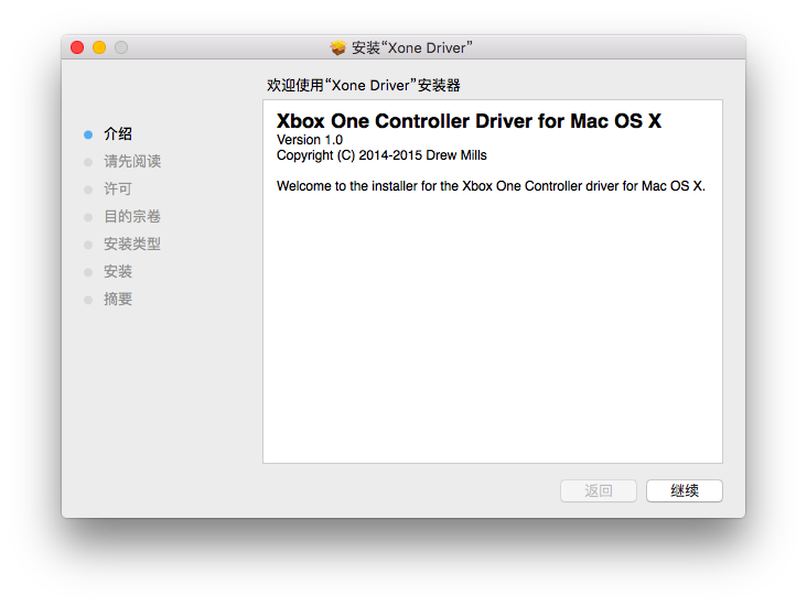 前往这个页面,下载名为「Xone-Driver-1.0.4.dmg」的驱动文件并安装,安装完成后会提示重启电脑。(尽管作者 Drew Mills 表示这个驱动他已经不再更新,我还是建议用 Xbox One 手柄的用户下载这个,原因稍后说明)