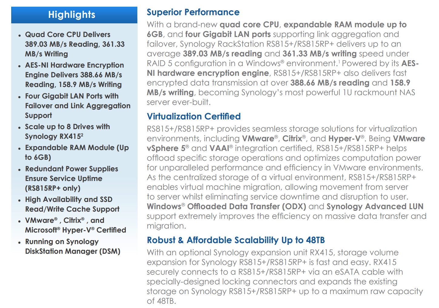 下载数据表:https://global.download.synology.com/download/Document/DataSheet/RackStation/15-year/RS815+/Synology_RS815+_RS815RP+_Data_Sheet_enu.pdf