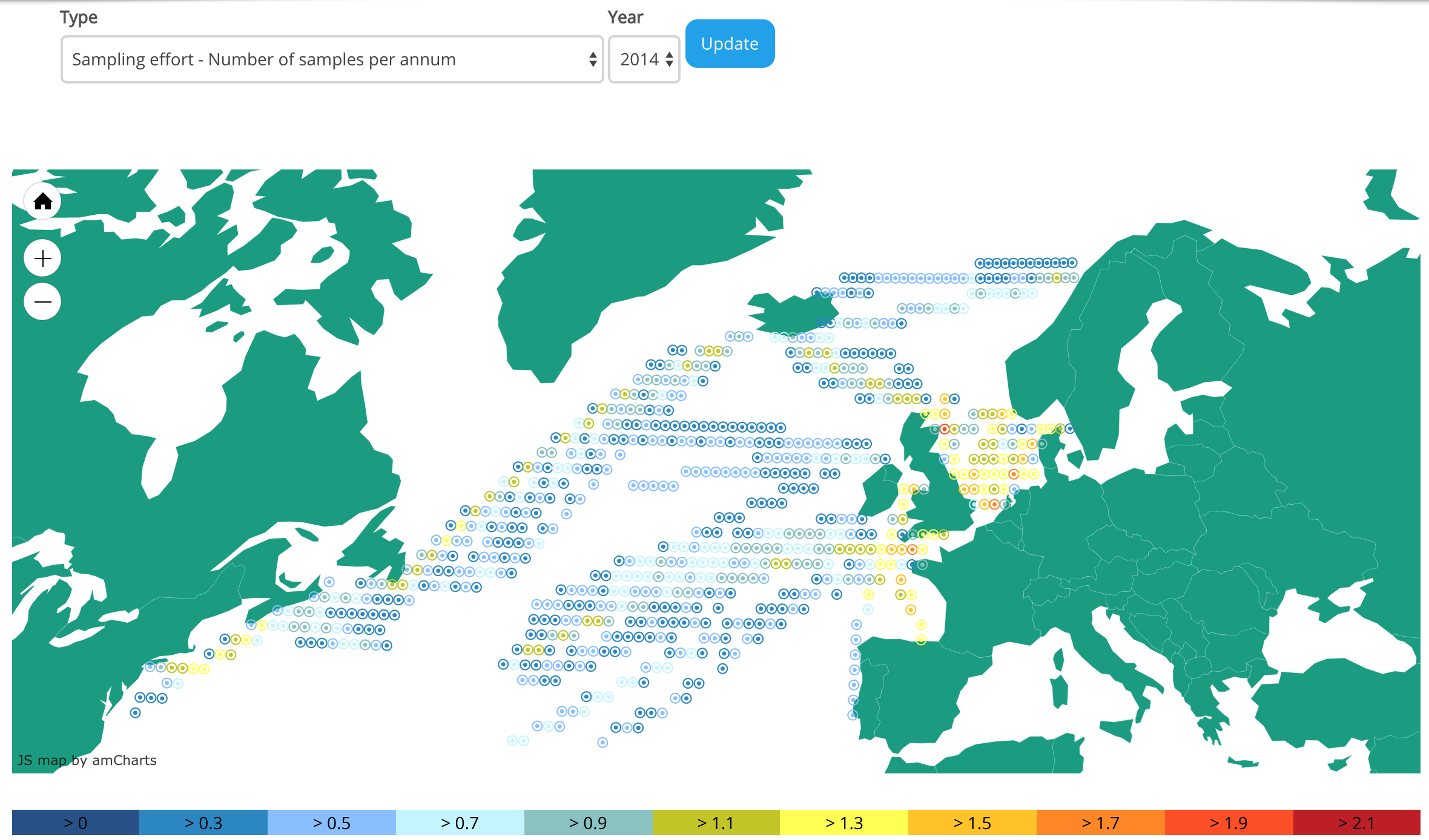 所以我们找到了这个数据库——Continuous Plankton Recorder Survey。
