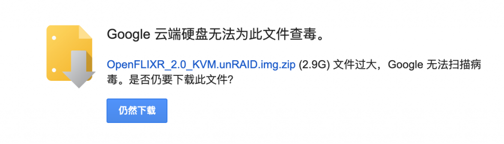 文件过大,Google 无法扫描病毒。是否仍要下载此文件?