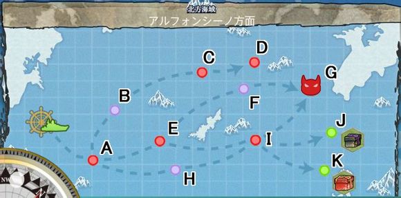 因为这个地图进BOSS点相当看运,很容易出现道中大破的情况,有时20回出击也一次到达不了也不是不可能的。