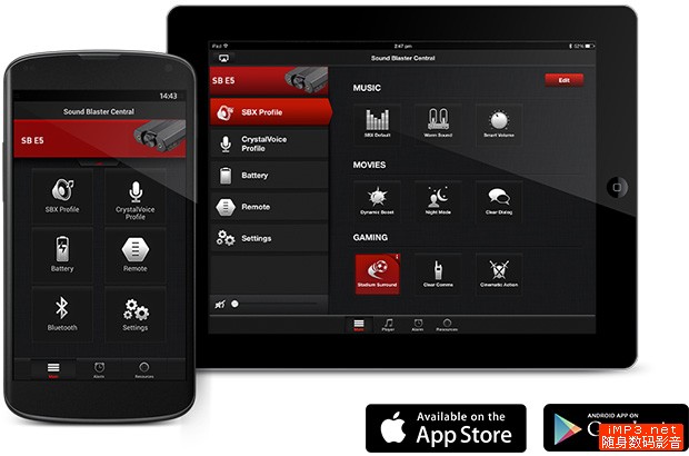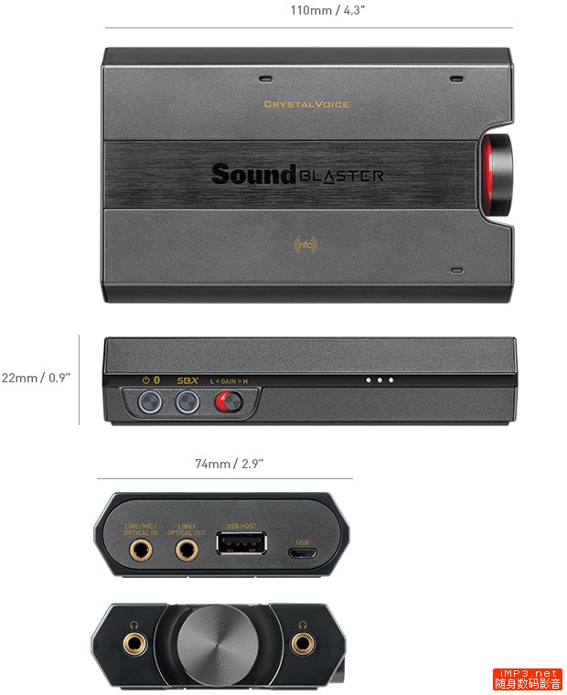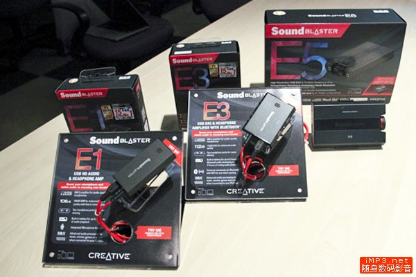 8月27日创新发布了新的Sound Blaster产品线 Sound Blaster E 系列,其中包括了入门级的解码耳放E1,进阶蓝牙版本E3和高端的搭载NFC技术、耳放与高品质录音功能的E5。再一次,创新使用了“发烧级”这样的形容。E5可以用USB方式连接PC或者移动设备,同时具备耳机输出、光线数字输出和线路输入功能,支持最新的Bluetooth 4.1技术,内置Cirrus Logic的CS4398 DAC、CS5361 ADC和德州仪器的TI6120A2耳放IC。D/A信噪比达到120dB,A/D信噪比达100dB。内置3200毫安时电池可以让E5续航达8小时。