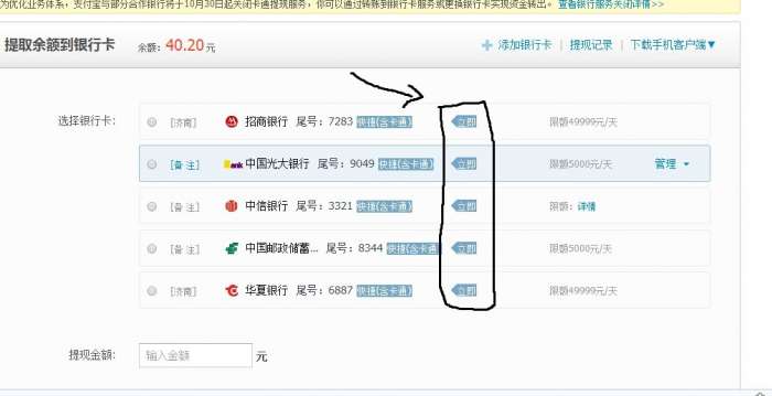 | 支付宝转账一般是2小时到账,但是有些银行提现可以实时到账,而且异地跨行ATM免费(短信提醒 开卡 年费免) 一.招商银行 (个人推荐M+卡,可以免各种费用,包括实时转账,自己修改预留手机) 打开招行网银专业版 二.中国邮政储蓄银行 登录邮政储蓄银行网上银行 1.申请开办 2网上支付通 3签约加办 4支付宝卡通 三.中国光大银行 四.华夏银行(短信提醒免费 办卡免费 异地跨行免费) 五.中信银行 六.工农中建等四大行实时到账的方法:我先提现到招商的卡通,用手机银行转入其他银行也是实时到账(M+卡免转账手续费),不超过30秒,可以设置免验证码 七 以下银行卡也支持实时提现,但是我没有,所以也发不了教程,但是我会想办法尽量搞到,这里有北京银行和平安银行,其他银行没有网点。 安全性:实时提现只能提现到自己银行卡,所以安全性很好,有些人说不安全的,可以把支付额度设置为0,只能提现不能支付,我也不知道不安全的点在哪里,能否说明一下哪里不安全 |