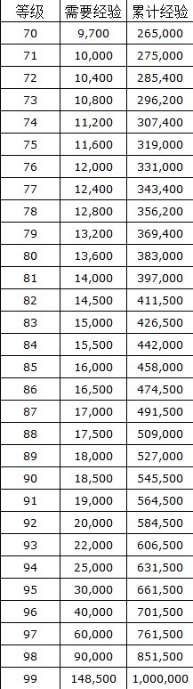 下面只列几个主要的练级点的经验