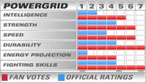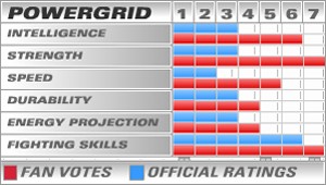 智力: 2 力量: 7 速度: 6 耐力: 7 能量投射: 7 格斗技巧: 6